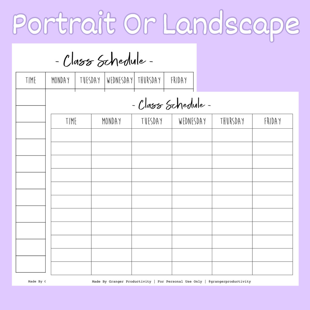 Class Schedule Printable | For School, College Or University | Daily & Weekly | Portrait & Landscape | School Planner | School Schedule | School Timetable | Student Planner | College Planner | Organiser | Instant Download