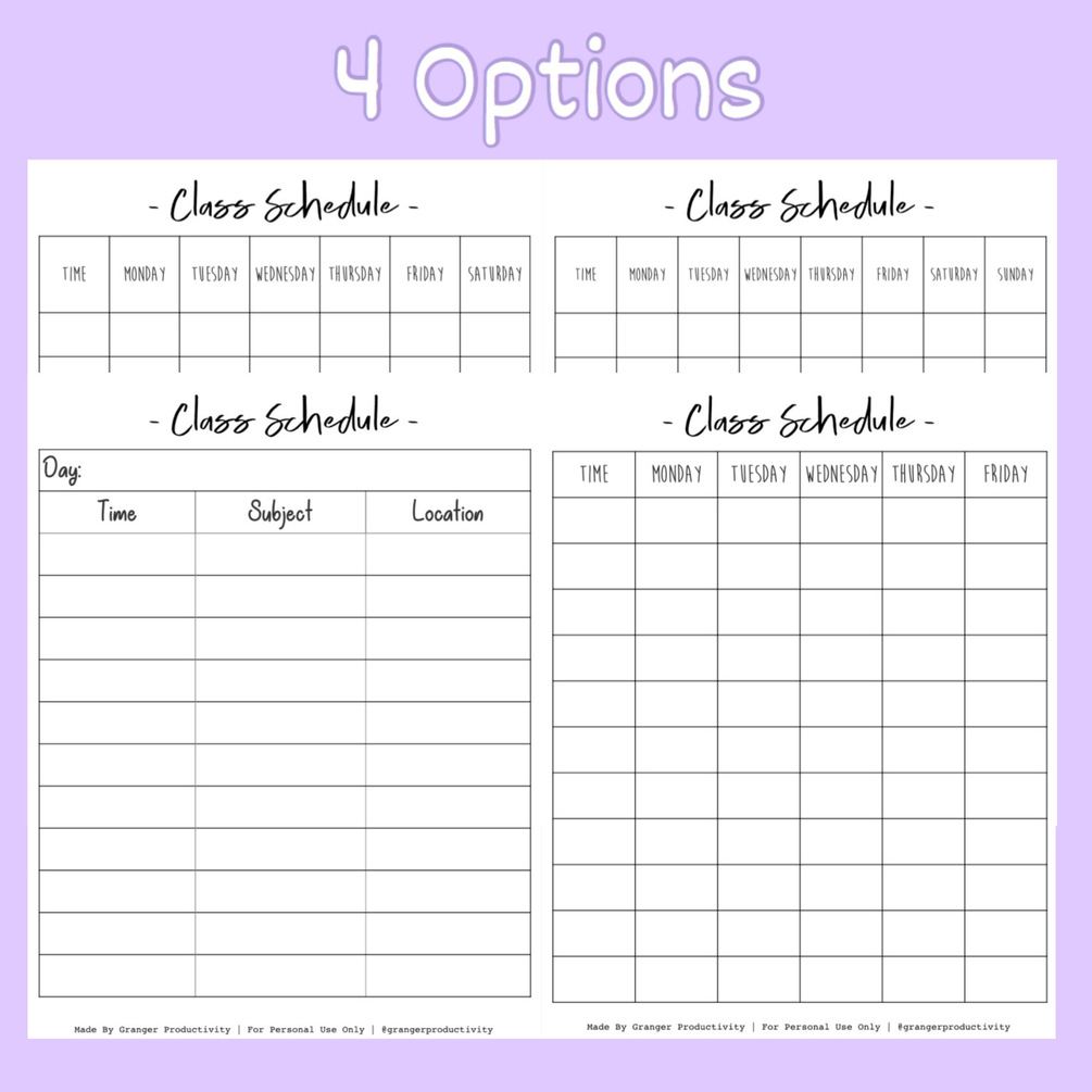 Class Schedule made by @grangerproductivity