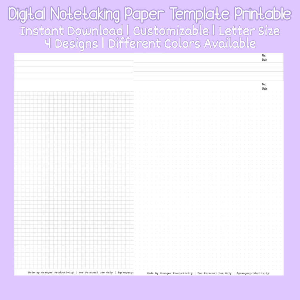 Digital Notetaking Paper Templates Printable made by @grangerproductivity
