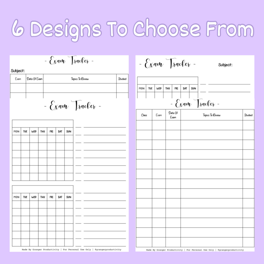 (6) Exam Tracker Printable