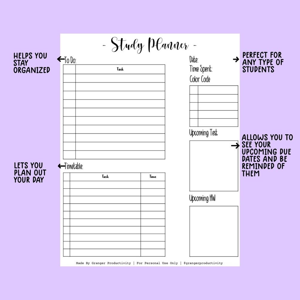 Study Planner made by @grangerproductivity